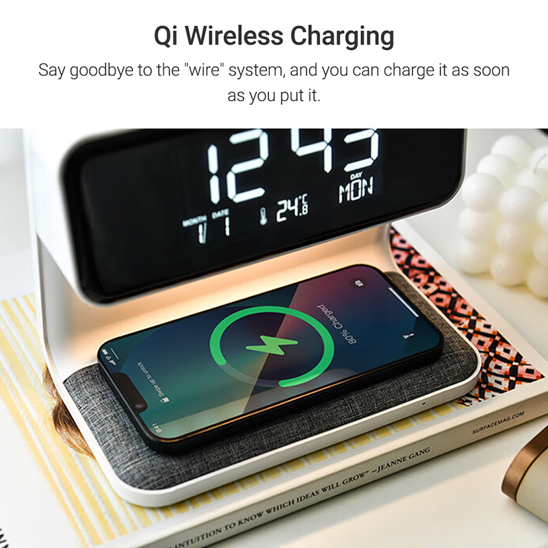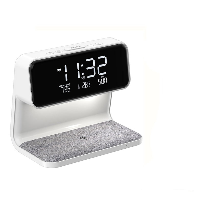 Maximize your productivity with the Multifunction Wireless Charger Lamp with Clock, the perfect workspace accessory. This innovative device combines a lamp, clock, and wireless charger into one sleek, space-saving solution. Say goodbye to cluttered cords and keep your desk organized while charging your devices efficiently. Enhance your workspace with this all-in-one tool, designed to help you stay on track and focused.